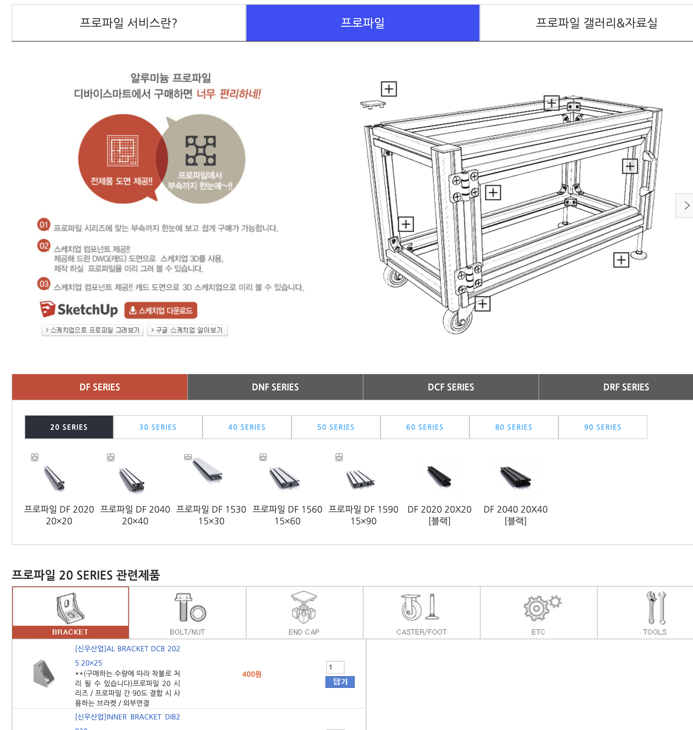 아주 친절하게도 어떤 제품을 구매해야 되는데 프로파일 사이즈에 맞춰서 정리가 되어 있다.